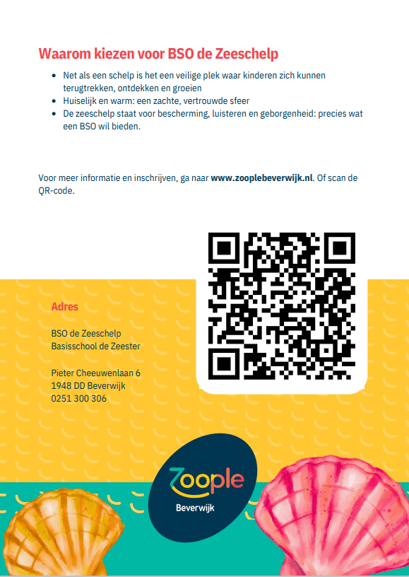 We zijn blij om vanaf januari een nieuwe kleinschalige buitenschoolse opvang te introduceren: BSO De Zeeschelp, onderdeel van Zoople.